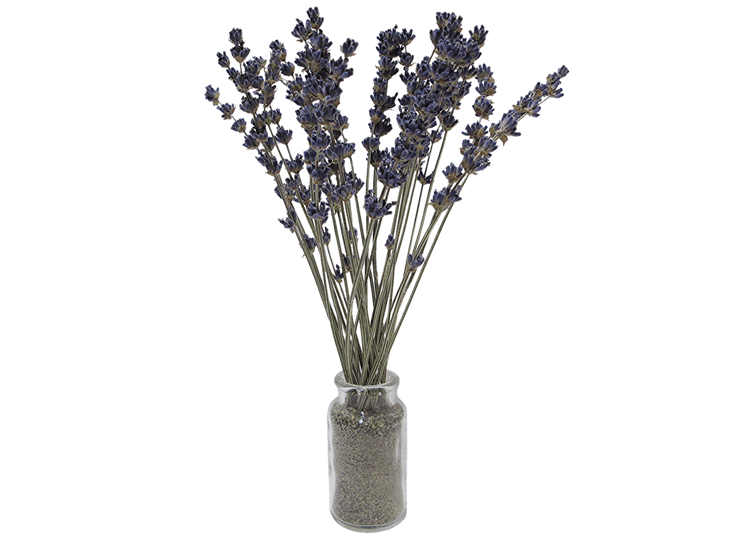Lavender Mini Bouquets have 35-40 dried English lavender stems with a floral fragrance, which are stuck into a small glass bottle filled with sand for ballast. These bouquets are fragile, and therefore, are only available with pick-up at our farm store or delivered locally.